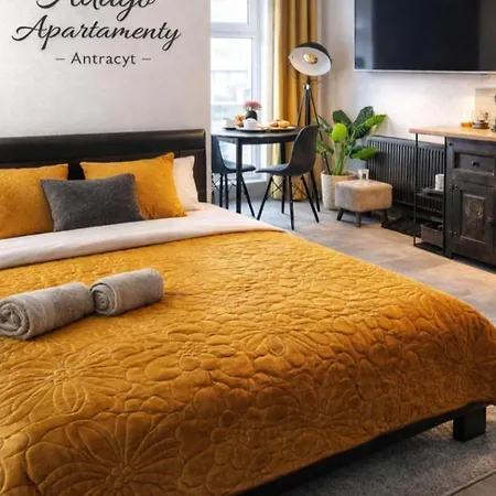 L'Adago Apartamenty Antracyt Szczawno-Zdroj - Luksusowy Apartament Premium - Nowoczesny Design - Blisko Parku Zdrojowego si trova a una distanza di 3 km dalla Stara Kopalnia Centrum Nauki I Sztuki e offre Wi-Fi sia per motivi di lavoro che per svago. Gli ospiti possono raggiungere Park Zdrojowy im. H. Wieniawskiego vicino all'appartamento.